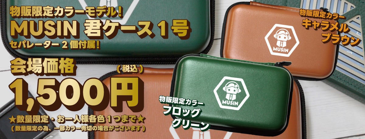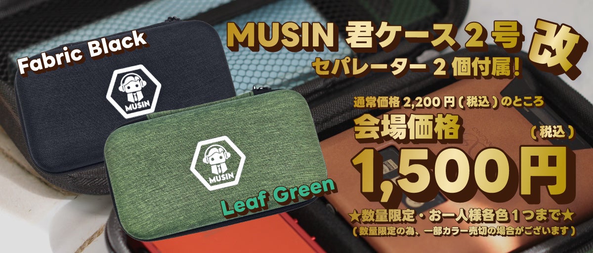 そして会場MUSINブース(C-05)では、弊社オリジナルアイテムやアウトレット品などお得にお買い求めいただける物販を開催いたします。