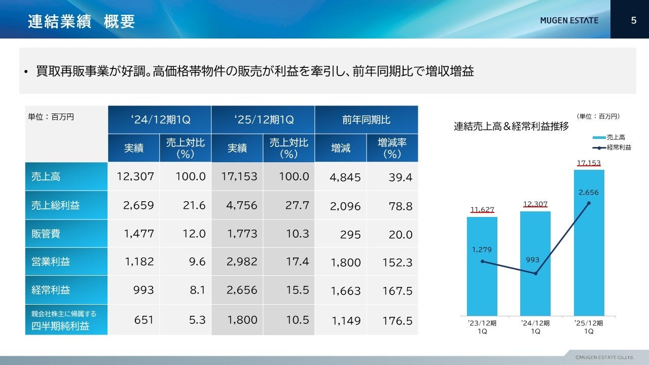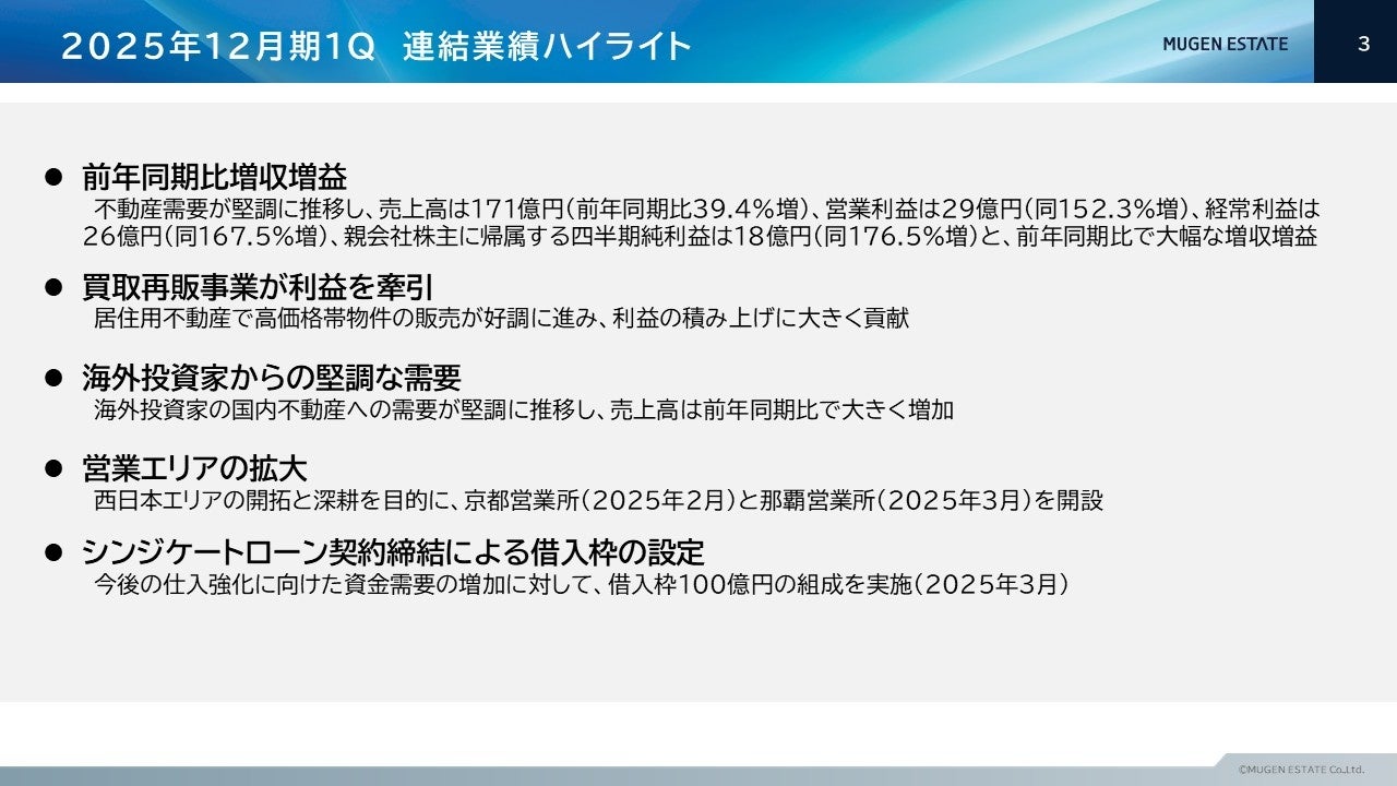 ムゲンエステート、2025年12月期第1四半期決算について