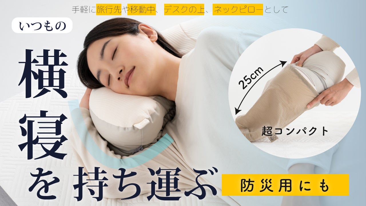 【見たことない!?横寝専用ポータブル枕】クラファン達成率661%! 横寝専用枕のYOKONEGU(ヨコネグ)から軽くて小さい持ち運びできるYOKONEGUポータブル販売開始 楽天市場にて販売中