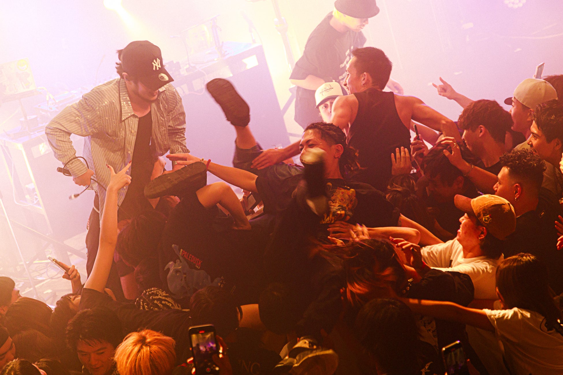 登場曲であるエミネム「Lose Yourself」が流れた瞬間、オーディエンスが声を上げ、溢れんばかりのエネルギーと熱気がパンパンに人が入ったasiaのメインフロアを満たす。