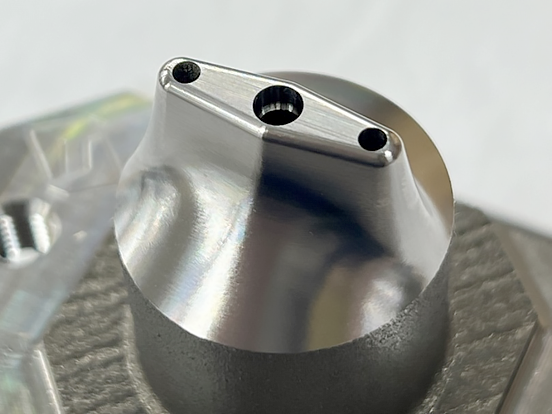 粉末の組成をマルエージング鋼ベースとしてMs点(鋼が硬化し始める温度)を調整し、SRT工法による残留応力解放ができるようにしています。「HYPER21」は、「OPMシリーズ」の切削加工と組み合わせることで、加工サイズや形状によらず、高精度な仕上がりを実現できます。また、加工する部品のサイズが小さい場合、加工時間短縮のためにSRT工法を使わずに切削仕上げを行うことも可能です。