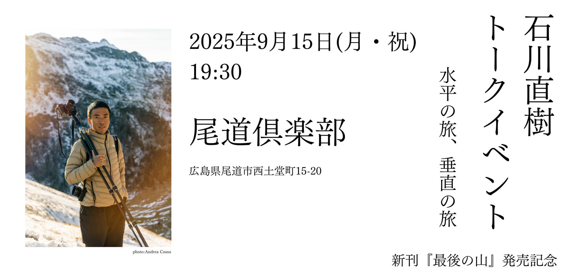 『尾道を目に宿す、宿。』をコンセプトとする、宿泊施設「尾道倶楽部(以下、当ホテル)」は、東京・谷中のさんさき坂カフェと共催で、写真家・石川直樹氏の新刊『最後の山』発売記念トークイベント「水平の旅、垂直の旅」を開催いたします。