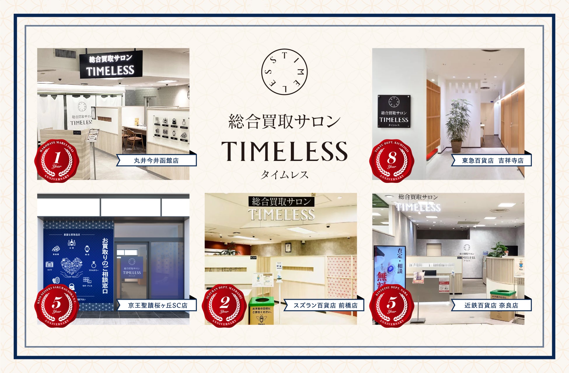 総合リユースサービス(オークション・総合買取サロン・古物商プラットフォーム)を展開する、株式会社タイムレス(本社:東京都港区、代表取締役社長:馬場 浩太)は、2025年10月で周年を迎える「東急百貨店 吉祥寺店」「近鉄百貨店 奈良店」「京王聖蹟桜ヶ丘SC店」「スズラン百貨店前橋店」「丸井今井函館店」にて2025年10月1日(水)~10月31日(金)(※1)の期間「周年キャンペーン」を実施いたします。