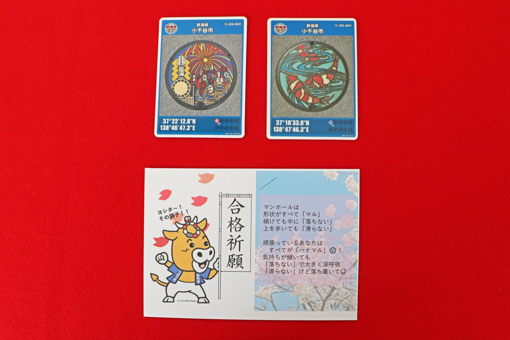 小千谷(おぢや)市は昨年に引き続き、錦鯉の里と総合産業会館サンプラザで、受験生や資格取得を目指す方を応援するため、合格祈願!マンホールカードを無料配布します。