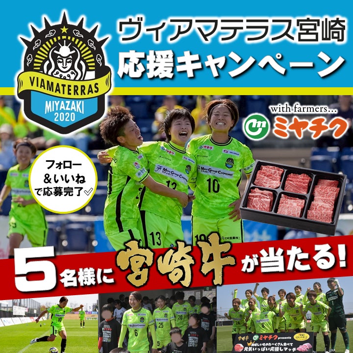 株式会社ミヤチク(本社:宮崎県都城市/代表取締役社長:船ヶ山 祐二)の公式SNS(Instagram・X)にて、”ヴィアマテラス宮崎”を応援して、宮崎牛が当たるプレゼントキャンペーンを開催中です!