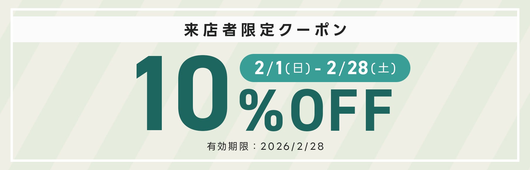 ~来店でオンラインでも使える10%OFFクーポンカードをプレゼント~