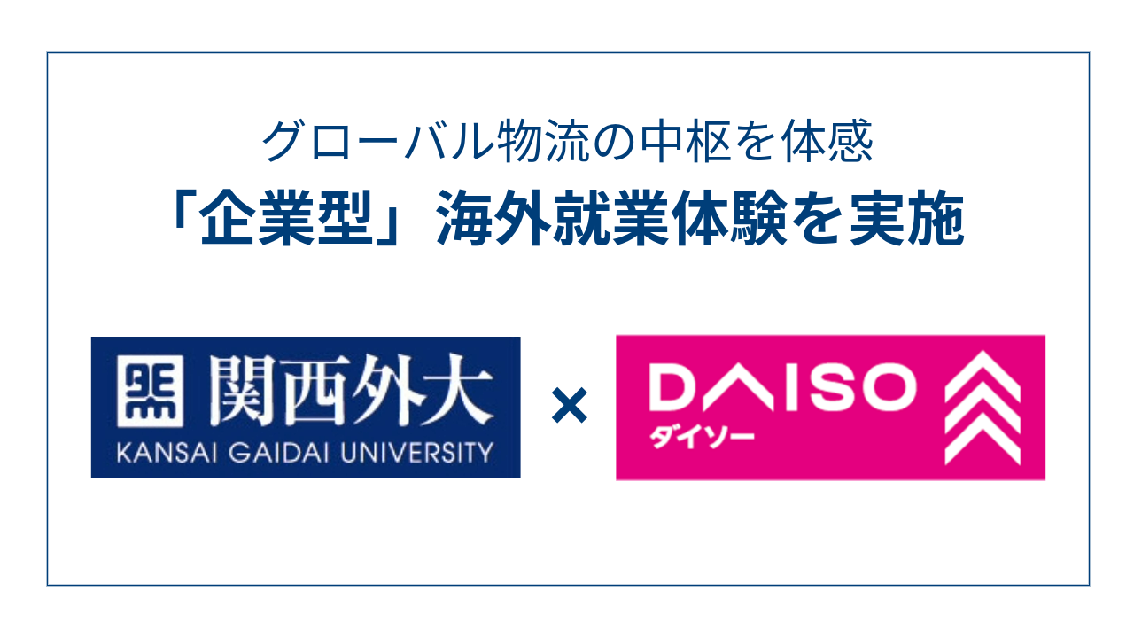 関西外国語大学(大阪府枚方市)は、2025年度春期休暇期間中、株式会社大創産業(以下DAISO )と連携し、マレーシアにおいて「企業型」海外就業体験プログラムを実施します。本プログラムは、グローバルに展開する企業の物流・事業戦略の現場を体感し、学生の課題発見力や協働力を養うことを目的としています。
