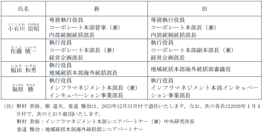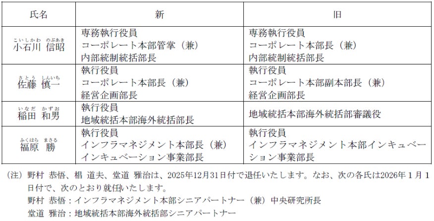 取締役体制(2026年3月26日付)、執行役員体制(2026年1月1日付)、執行役員体制(2026年4月1日付)については、以下のPDFよりご覧ください。