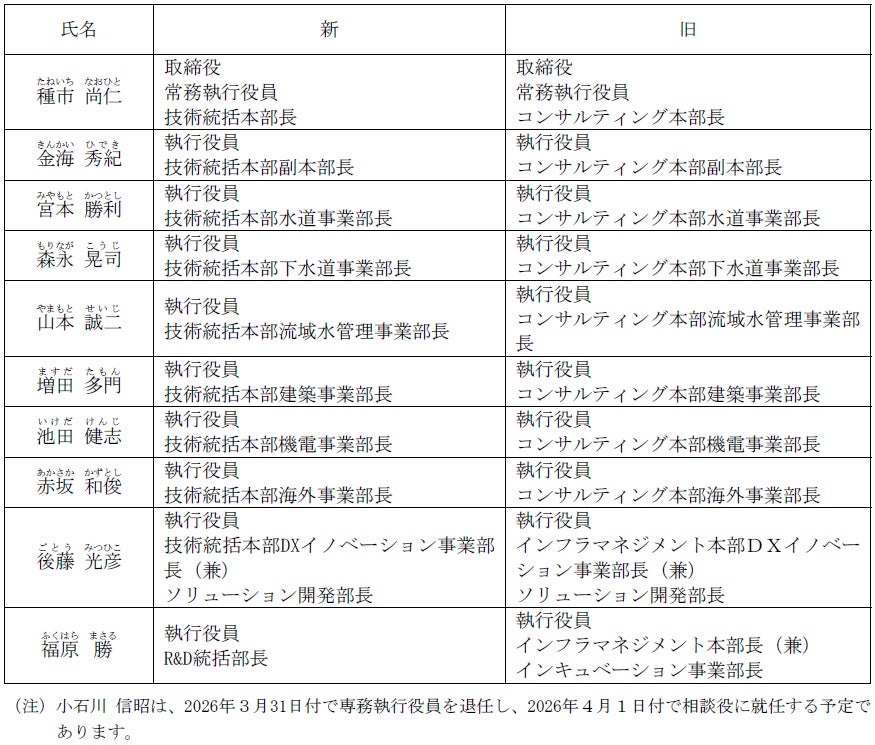 インフラマネジメント本部のDXイノベーション事業部をコンサルティング本部に統合し、「技術統括本部」として再編する。