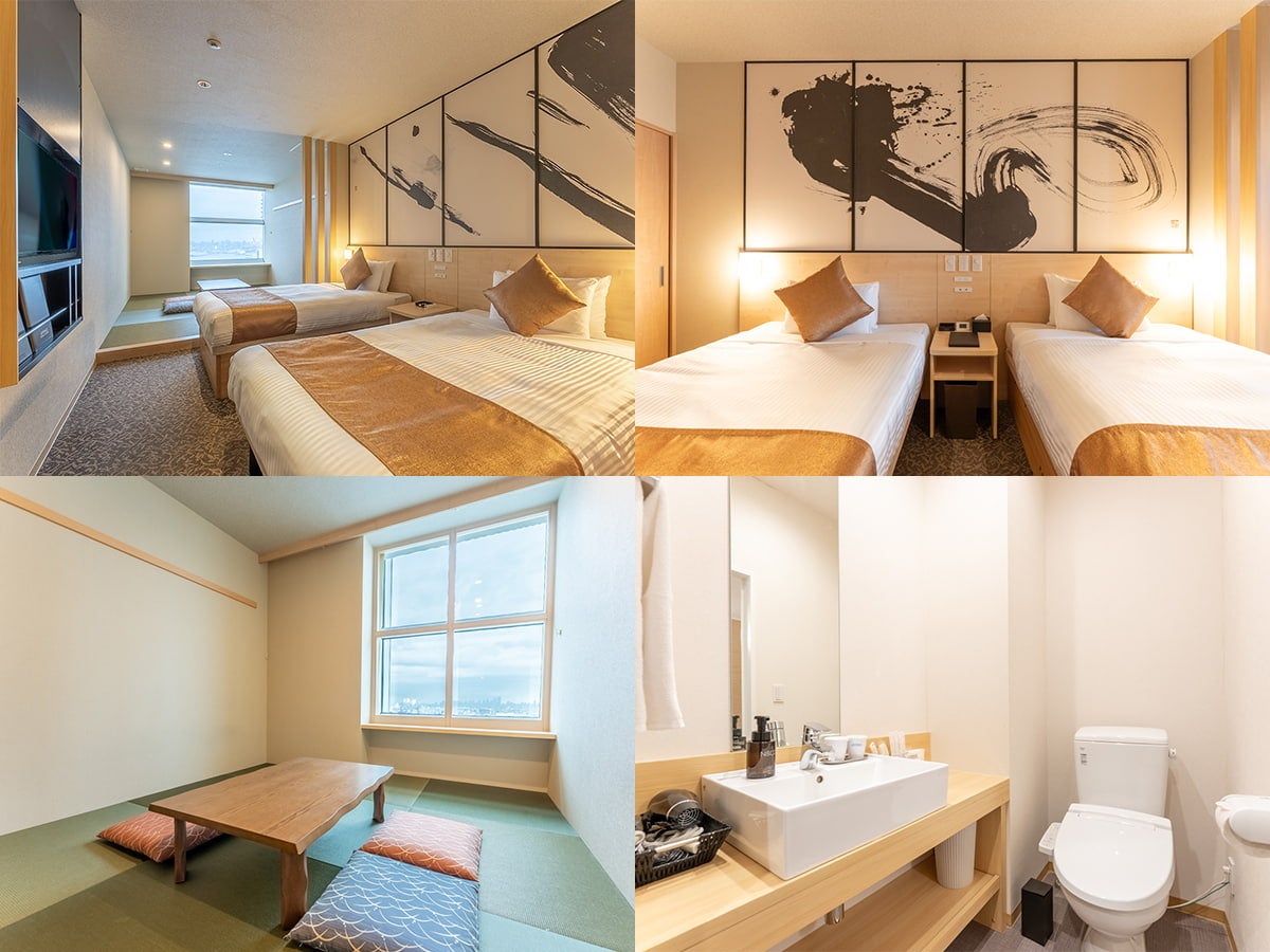 「世界から大阪へ 大阪から世界へ」をコンセプトに様々な趣向が凝らされたホテルは、国内外からのお客様に大阪観光を満喫いただけるよう、テーマパーク最寄り駅「ユニバーサルシティ駅」へのシャトルバスも運行。全ての客室が35㎡以上あり最大6名まで宿泊可能で機能性とデザイン性を両立させた和洋室が中心。展望台から見える夜景は日本の夜景百選に選ばれたほどで、階数は違えど全ての客室から関西の夜景を一望できます。また、大阪を代表するアーティストや企業とのコラボレーションルームもお楽しみ頂けます。