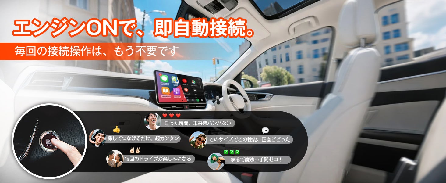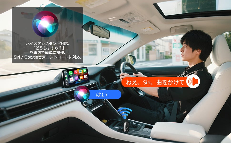 純正有線CarPlay/Android Auto搭載車をワイヤレス化。Bluetooth 5.4、自動再接続・2台登録・技適認証&OTA対応で毎日の運転をスムーズに