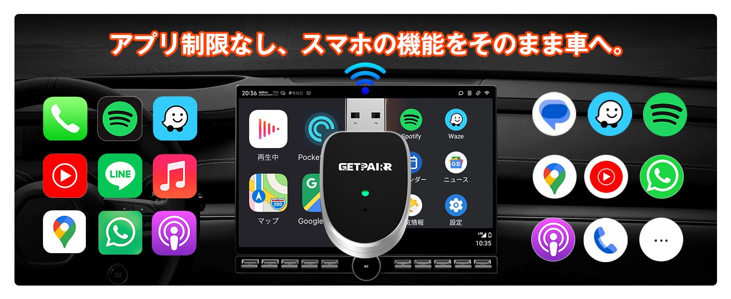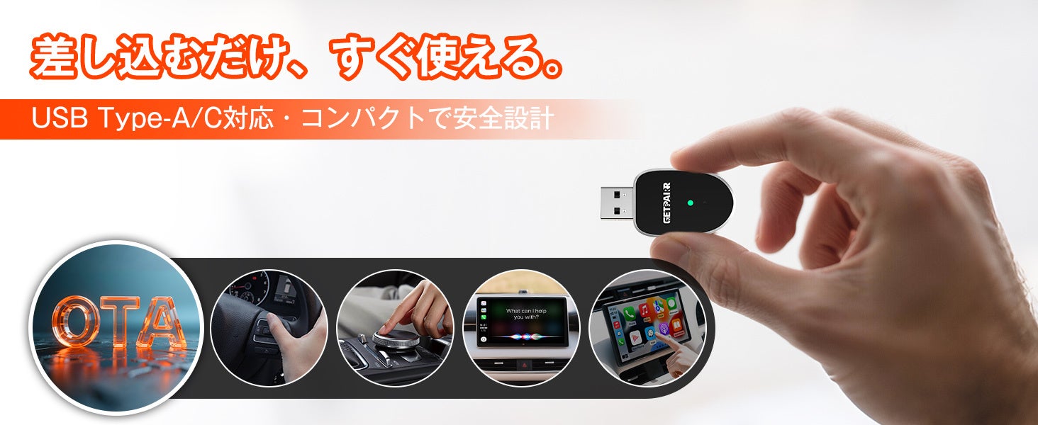 通勤も週末ドライブも“挿すだけ”でワイヤレス化。超小型アダプター「GETPAIRR MINI」がCarPlay/Android Auto対応・自動再接続で、キャンペーン価格2,979円で登場