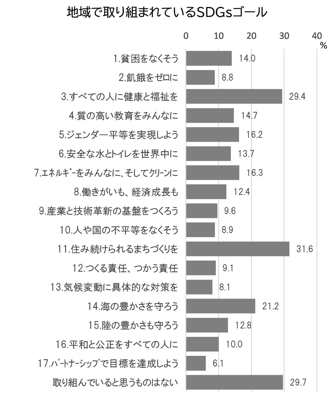 なお、17ゴールのすべてにおいて「取り組まれている」との回答が前年の結果より増えており、「取り組んでいると思うものはない」との回答は29.7%で、前年の35.9%より6.2ポイント減少している。