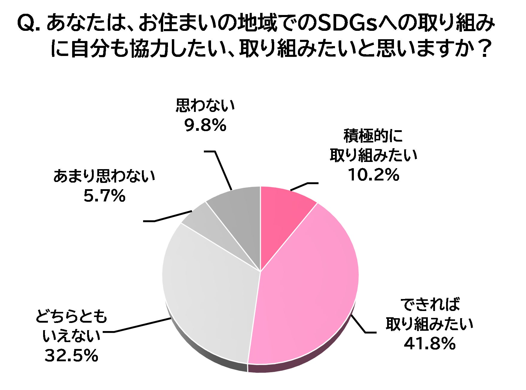 回答者のSDGsへの今後の取組意欲に関しては、10.2%が「積極的に取り組みたい」、41.8%が「できれば取り組みたい」と答えるなど、半数以上が取り組みに肯定的な回答を選んだ。ところが、およそ1割が「取り組みたいとは思わない」と回答するなど、半数近くは取り組む意欲を示していない。特に30代では13.4%、20代では11.4%が「取り組みたいとは思わない」と回答するなど、若い世代での否定的な意見が多いようだ。