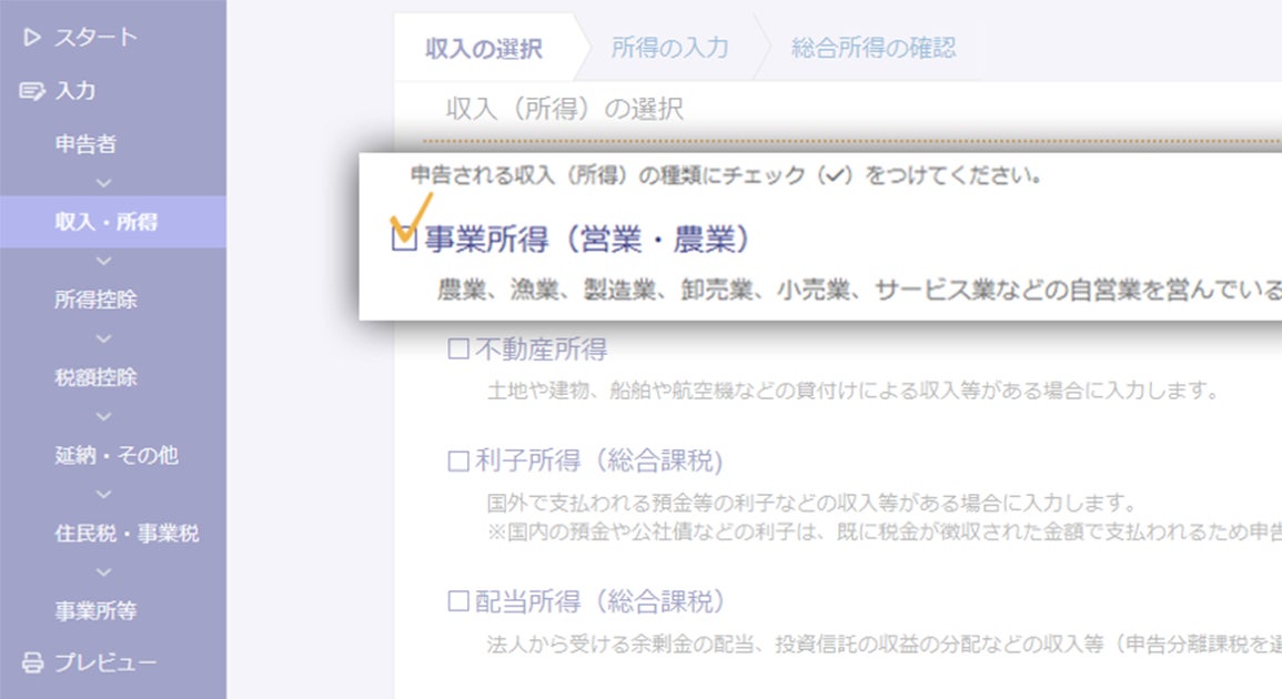 ③案内に沿って質問に答えるだけで確定申告書ができる