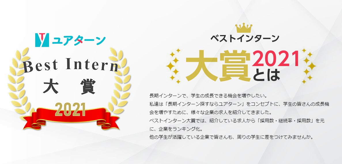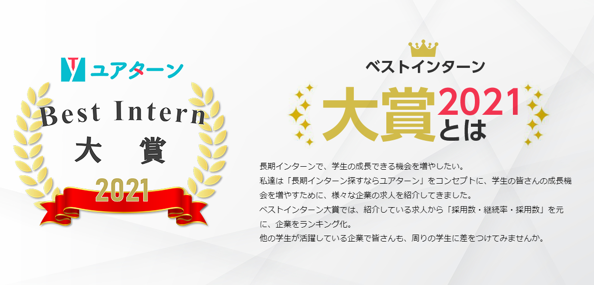 ユアターンが選ぶ2021年ベストインターン大賞が決定!学生から選ばれたおすすめ長期インターンとは?