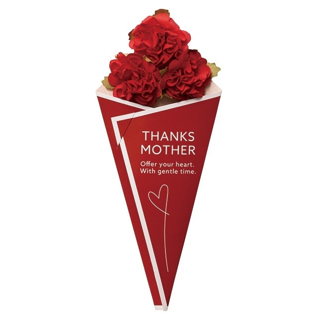 ギフトを華やかに彩るカーネーションをモチーフにしたデザインで、普段は照れくさくて言えない「ありがとう」の気持ちを届けるお手伝いをいたします。