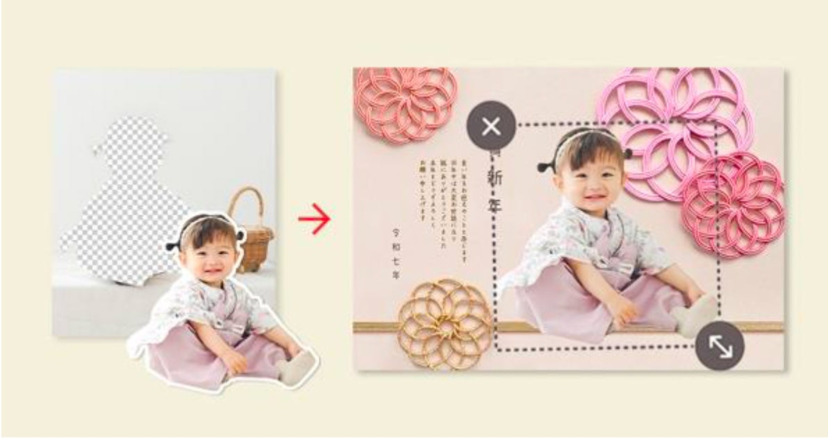 写真を人物やペットの形に切り抜いてスタンプとして使用することができる「スマホで写真年賀状」の人気機能「人物切り抜き」が今年も登場。オリジナリティ溢れるこだわり写真年賀状を作りたいというお客様に毎年ご好評を頂いております。また、「人物切り抜き」機能におすすめなデザインも多数ご用意しております。