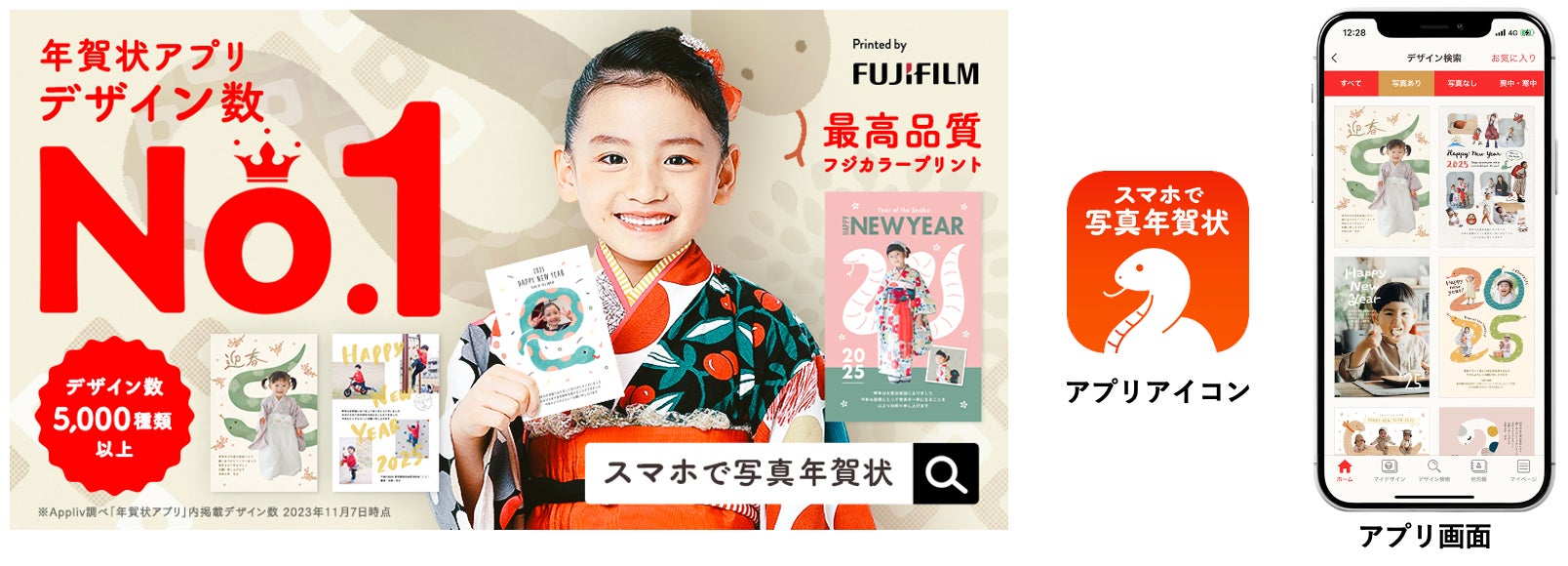デザイン数No.1 ※1年賀状アプリ「スマホで写真年賀状2025」11月1日(金)注文受付開始
