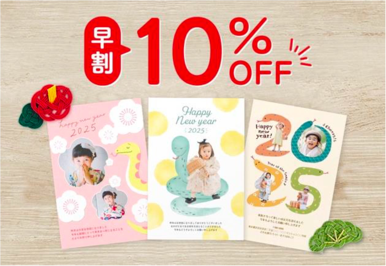 早めのご注文がお得な「早割SALE」を開催中。印刷代が最大で10%OFFになるキャンペーンは今だけ。今年も年賀状を出す予定の方は、早めのご注文がおすすめです。