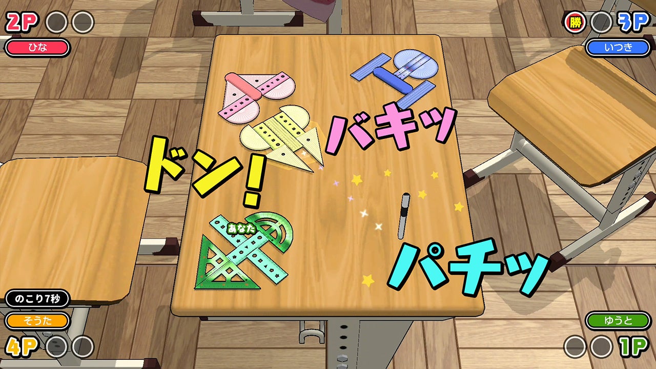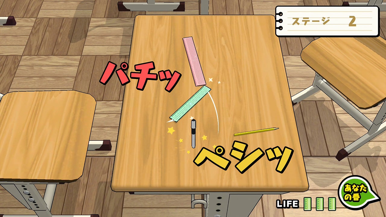 オンライン対戦で世界中のプレイヤーと対戦だ! 相手の定規を机の上から弾き飛ばせ!
