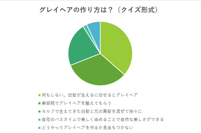 では、アンケートではクイズ形式でグレイヘアの作り方について聞いてみました。「グレイヘアの作り方を知っていますか?」と5択の選択肢で聞いたところ、下記のようになりました。