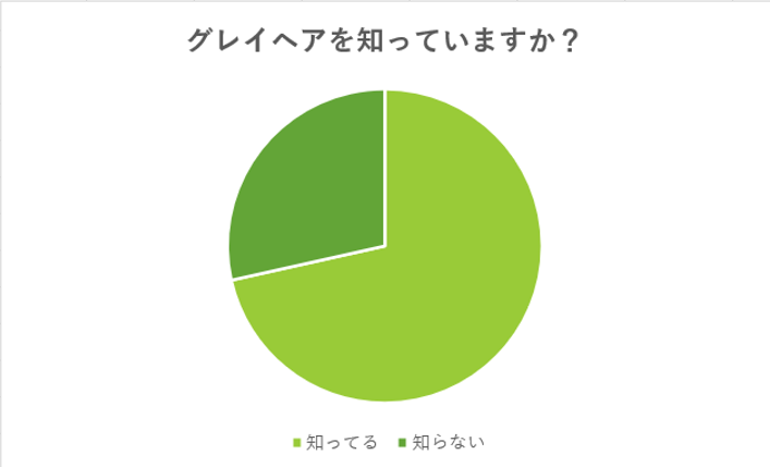 グレイヘアは実に7割以上の人が、知っていることは知っているのです。「グレイヘア」というぐらいですからなんとなくどんなものか予想がつく、といったところでしょうか。