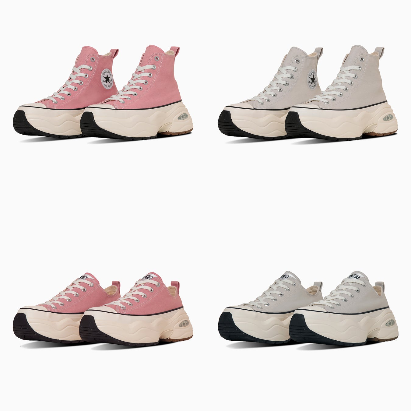 「ALL STAR Ⓡ SURGETRAINER」は、オールスターのクラシックなデザインに、90年代のトレーニングシューズをモチーフにしたボリュームソールを組み合わせることで、レトロスポーティーな印象に仕上げた新鮮なデザインが特徴。