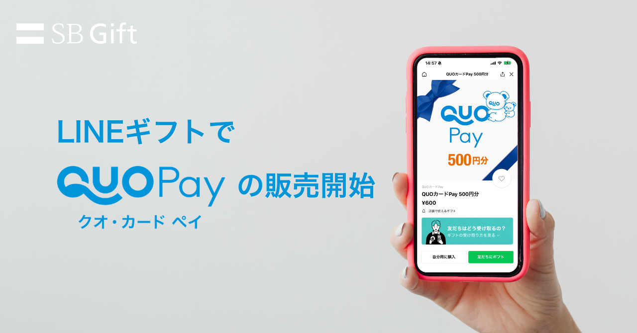 SBギフト株式会社(本社:福岡県福岡市、代表取締役 大和 清隆)は、株式会社クオカード(本社:東京都中央区、代表取締役社長:近田 剛)が展開するスマートフォンで使えるデジタルギフト「QUOカードPay(クオ・カード ペイ)」を、2026年4月20日(月)よりLINEギフトにて販売開始いたします。