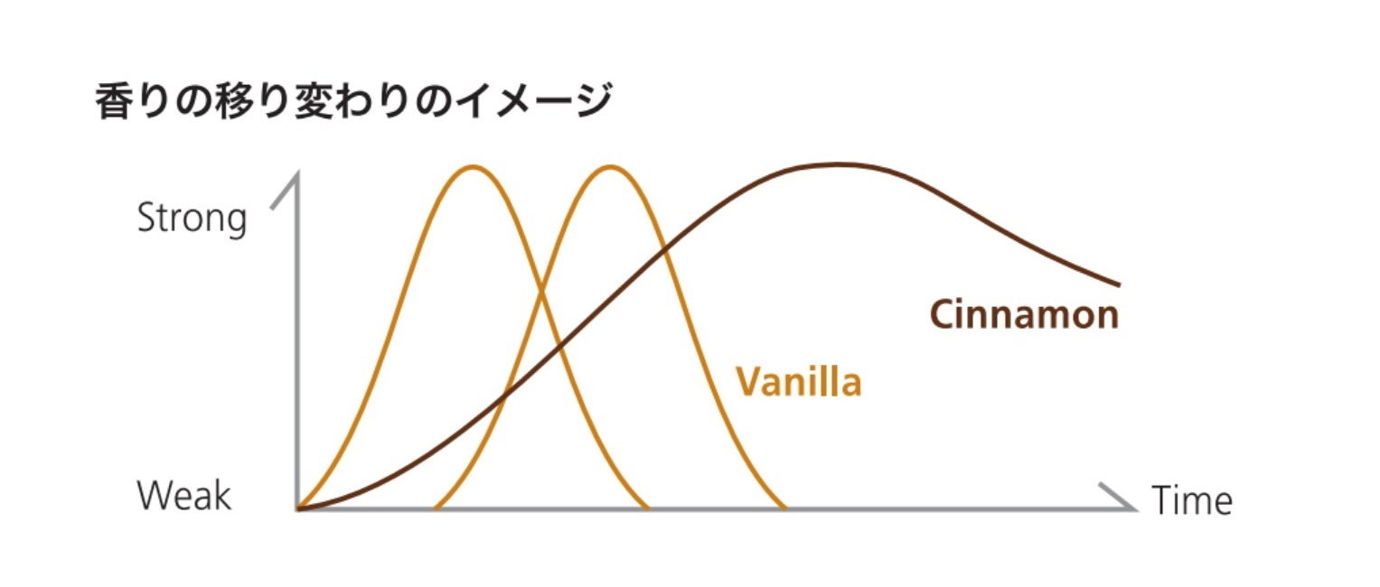 食べるとはじめにホワイトチョコレートのミルクの香りと甘味を感じます。ニブを噛むとバニラの香りが広がり、最後にシナモンの香りが余韻に続きます。