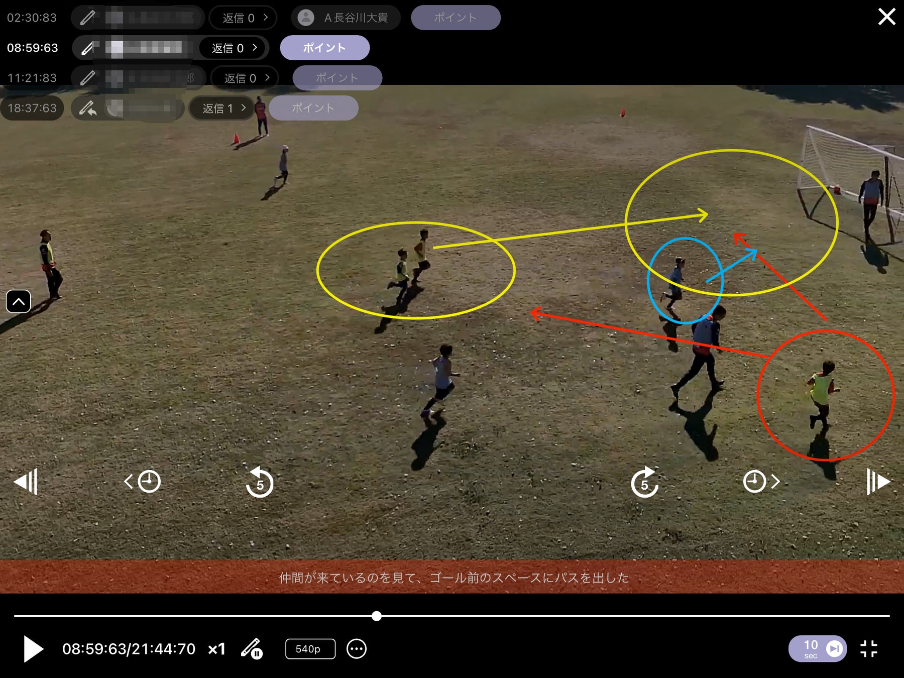 ②撮影した映像を「SPLYZA Teams」で分析し、子どもたちのディスカッション、コーチによる指導を実施