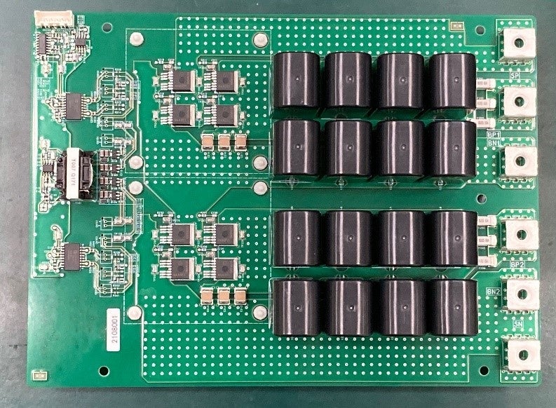 この基板は、株式会社 JERAと、トヨタ⾃動車株式会社によりプレスリリースされた、リユースした電動車の駆動用バッテリーを活用した、世界初となる大容量スイープ蓄電システムに実装されています。