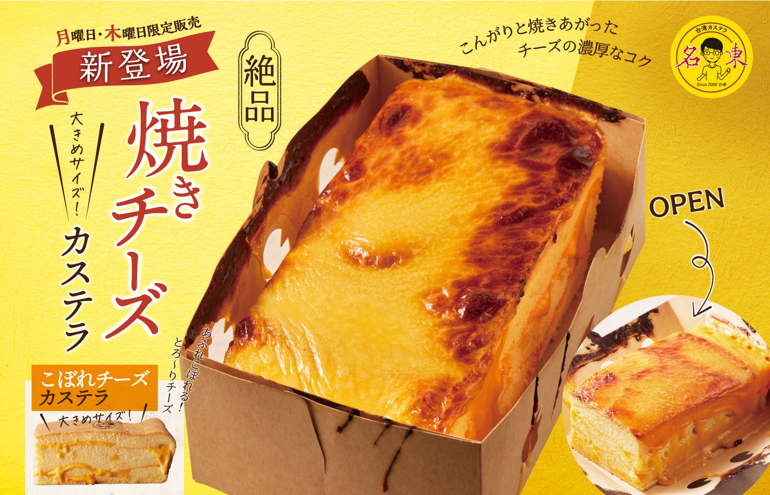 フークル株式会社(所在地:東京都港区 代表取締役:河﨑孝文)が展開する、老舗台湾カステラ店「名東 キラリナ吉祥寺店」は、3月2日(木)より、チーズをふんだんに使った新作カステラ『焼きチーズカステラ』『こぼれチーズカステラ』の2商品を月曜日、木曜日の曜日限定で販売開始いたします。