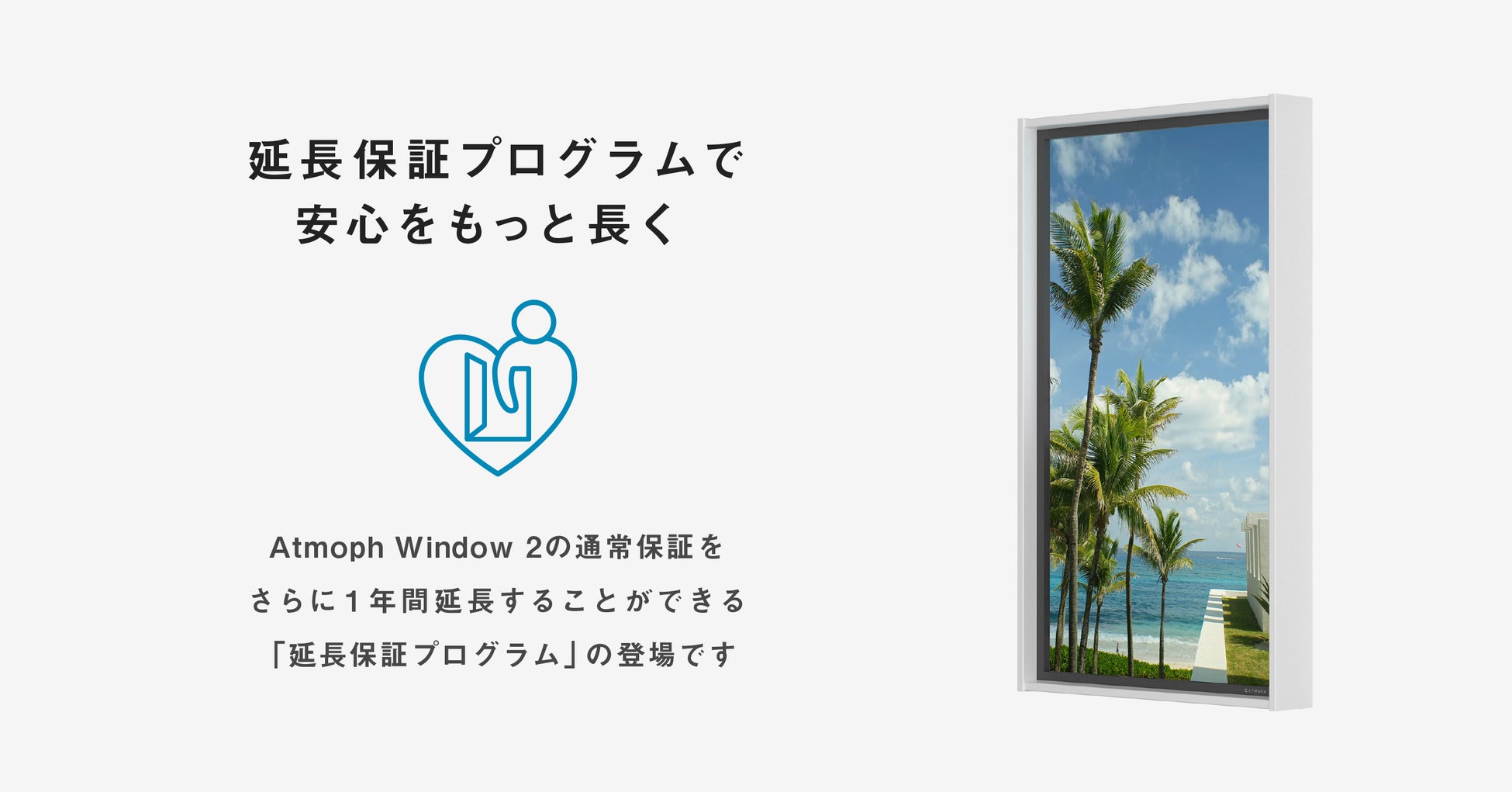 そこで、昔から製品を楽しんでいただいる方と、さらに新しく製品を購入して使い始める方にも長く安心して製品をお使いいただけるよう2種類の保証サービスを本日から開始、みなさまのAtmoph Window 2との生活をサポートします。