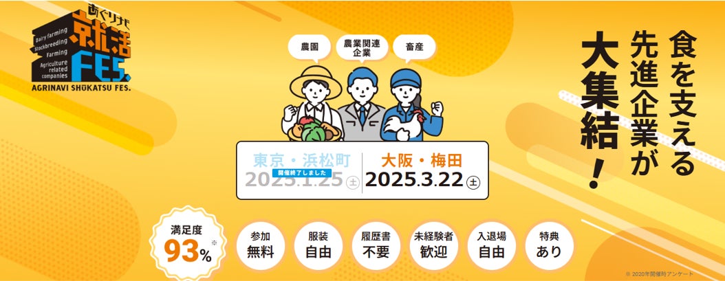 【3/22@大阪】大盛況だった東京会場に続き、大阪でも食を支える先進企業が集結する『あぐりナビ就活FES.』を新卒・中途同時開催します!