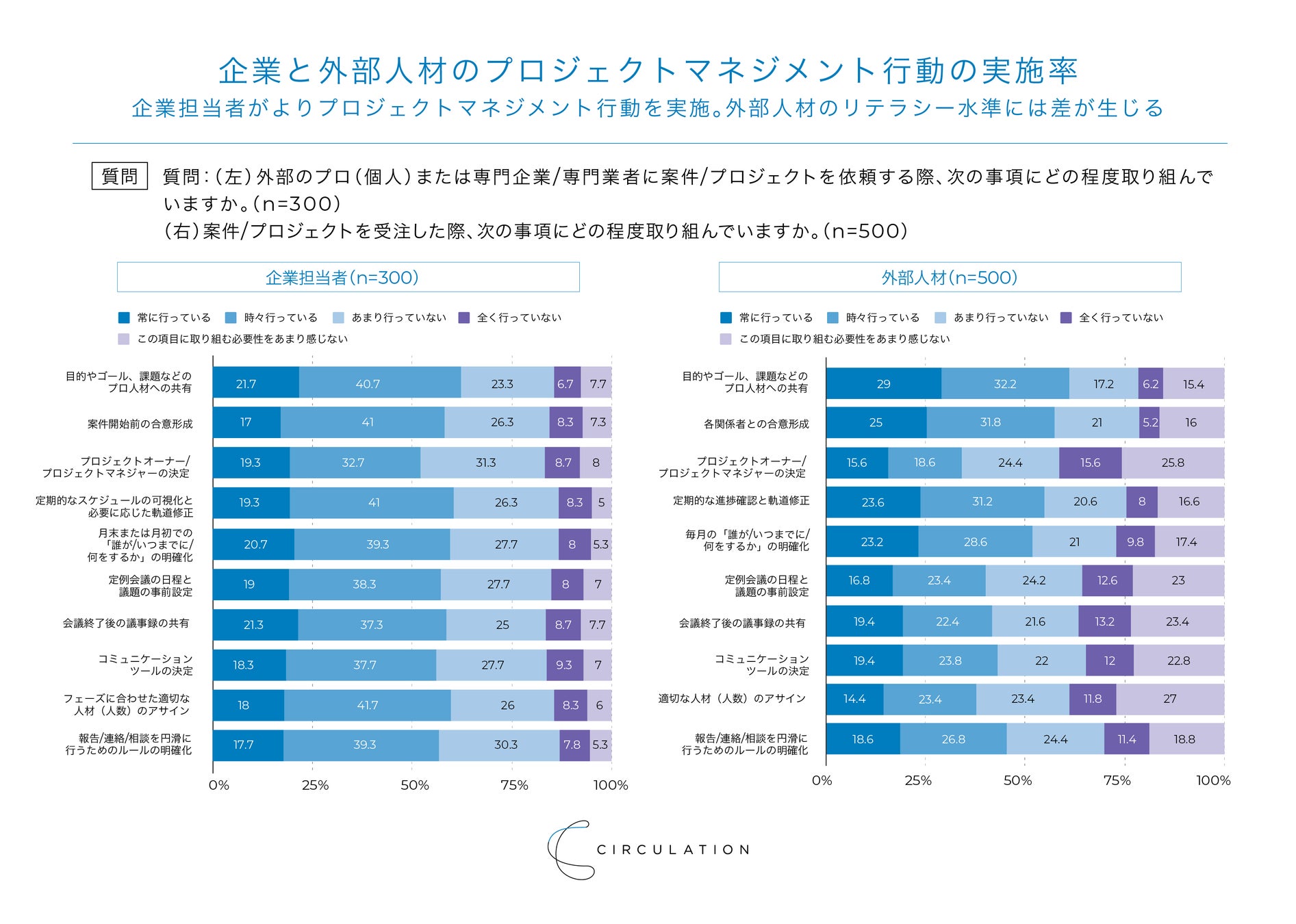 <企業担当者は半数以上がプロジェクトマネジメント行動を実施、外部人材は行動の必要性を感じない割合が約2割>