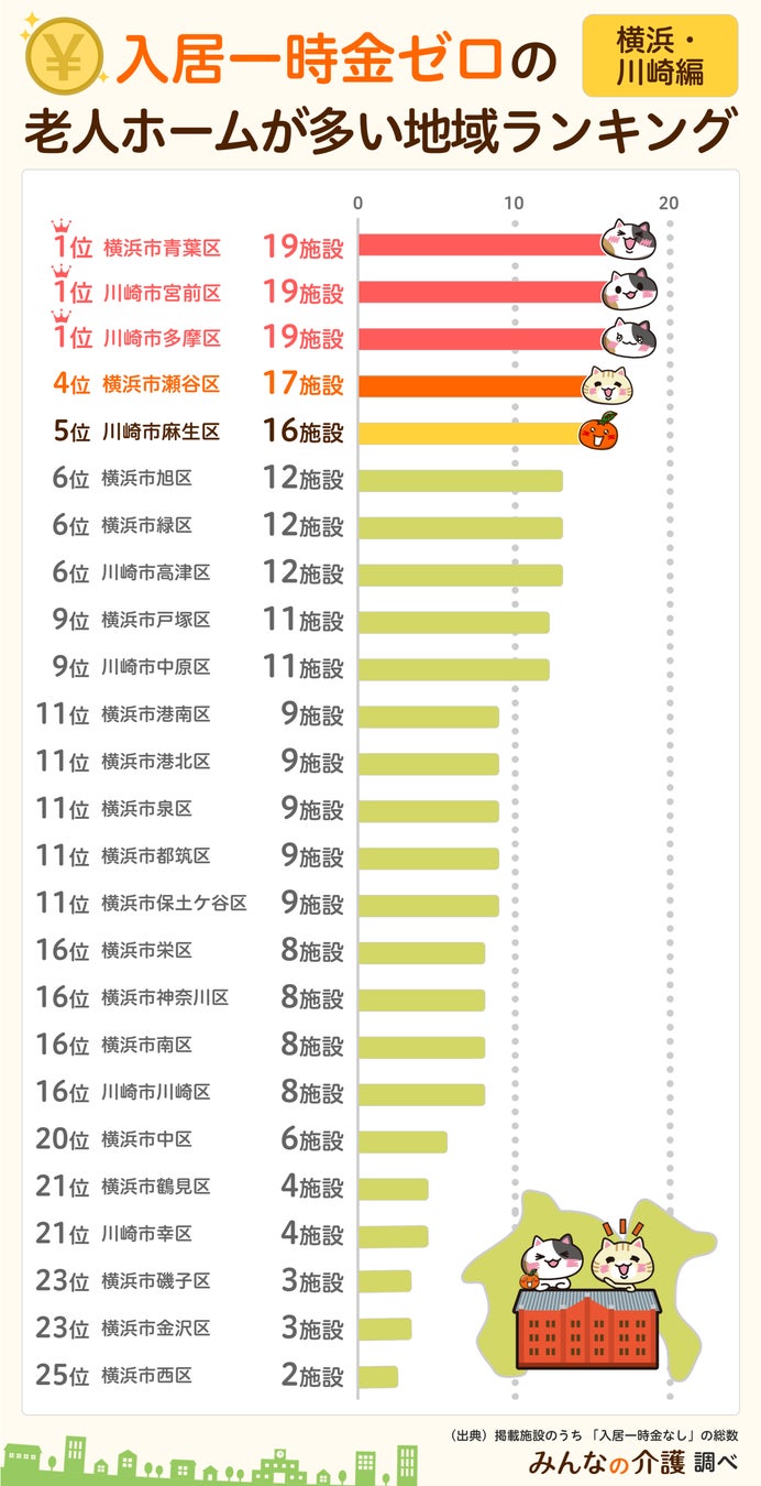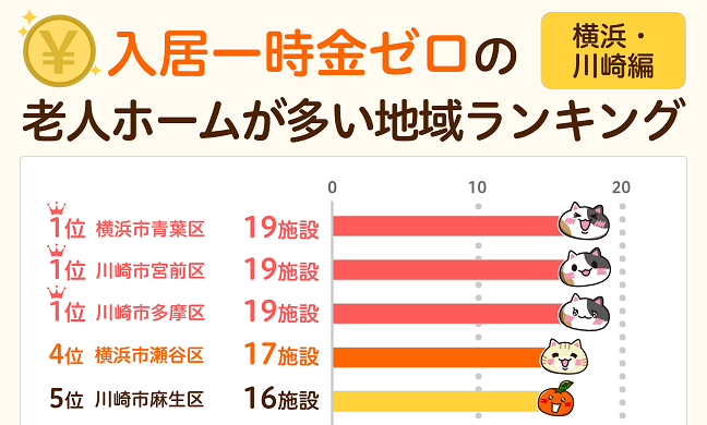 【みんなの介護】横浜・川崎エリアの1位はどこ?「一時金なし」で入居できる施設が多い地域ランキング【横浜・川崎編】