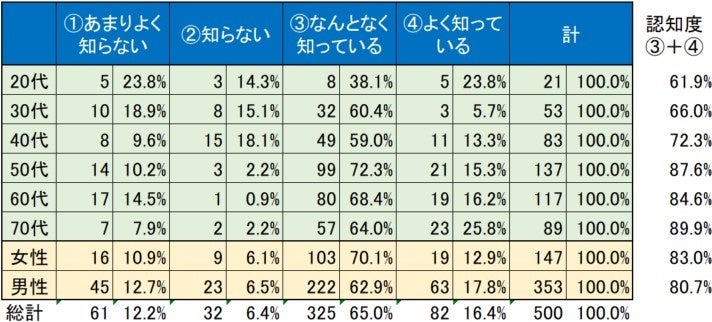 50才代以上の認知度は8割以上。但し、その大多数が具体的なあり方や進め方などを理解している人が少ない。