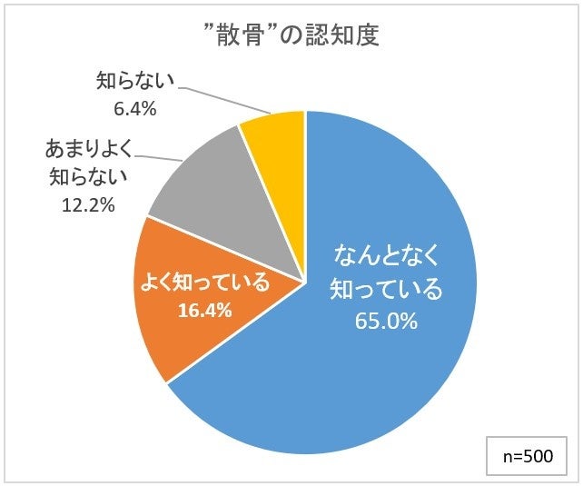 お墓業界唯一の経済産業省公認団体「全国石製品協同組合(以下 全石協)(東京都港区、理事長 加登隆三)」は、近年多様化するお墓の満足度の実態を把握するために、全国20代以上 男女 500名を対象に「散骨」についてアンケート調査を実施いたしました。得られた回答結果の概要をまとめました。