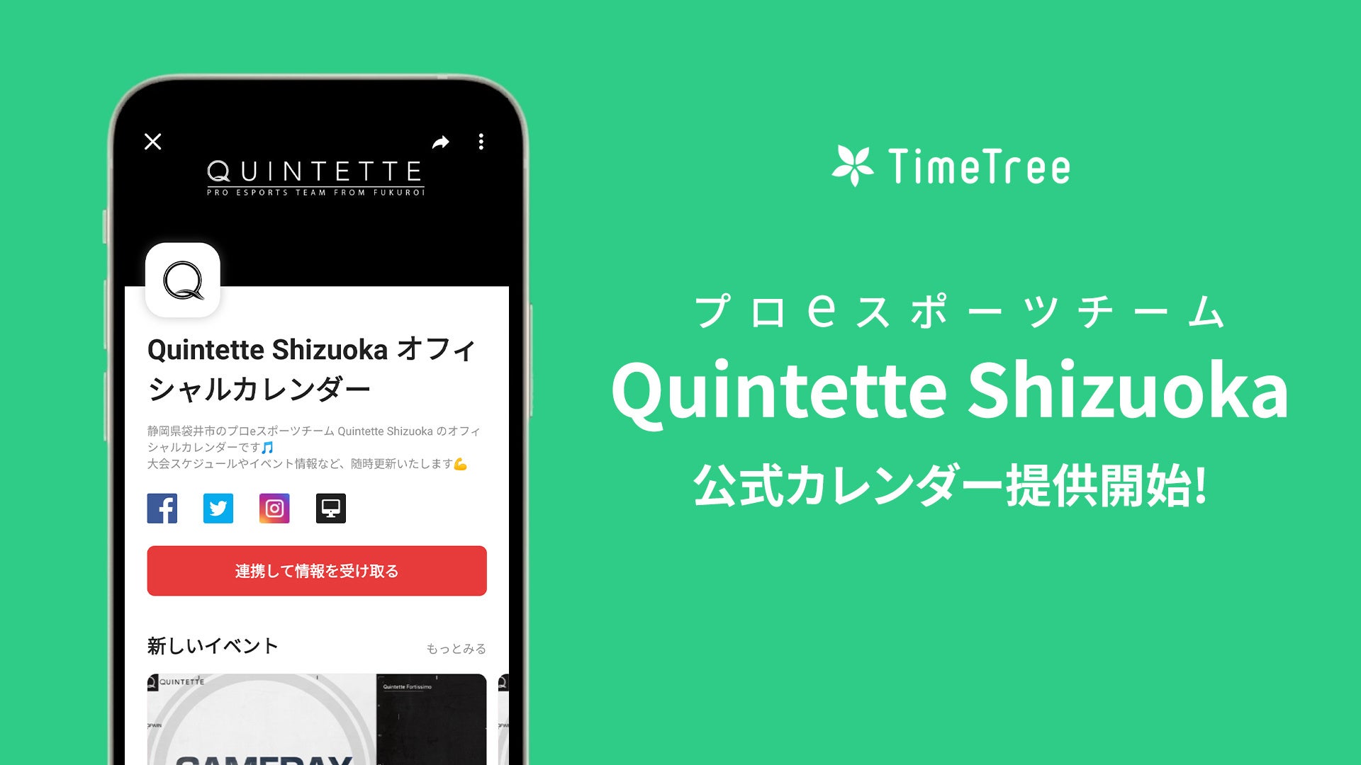カレンダーシェアアプリ「TimeTree」を運営する株式会社TimeTree(本社:東京都新宿区、代表取締役社長:深川 泰斗)は、カレンダー形式でイベント情報を公開・発信できるプラットフォーム「TimeTree 公開カレンダー」において、プロeスポーツチーム「Quintette Shizuoka」が公式カレンダーを提供開始したことをお知らせいたします。