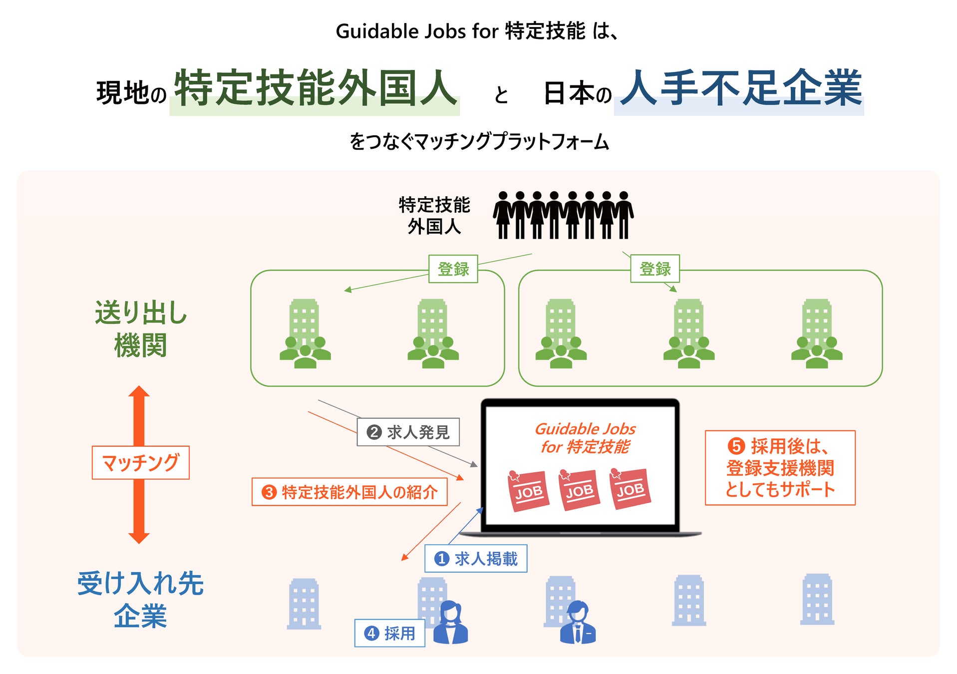 来日前の特定技能外国人と日本企業をマッチング、採用後のサポートまで伴走する「Guidable Jobs for 特定技能」を今春に開始