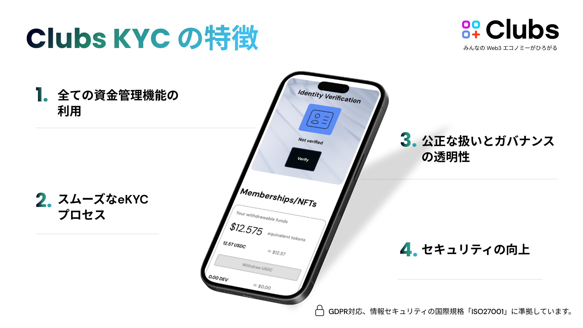 「Clubs KYC」は、すべての Clubs に標準搭載され、利用者にとって以下の重要なメリットがあります。
