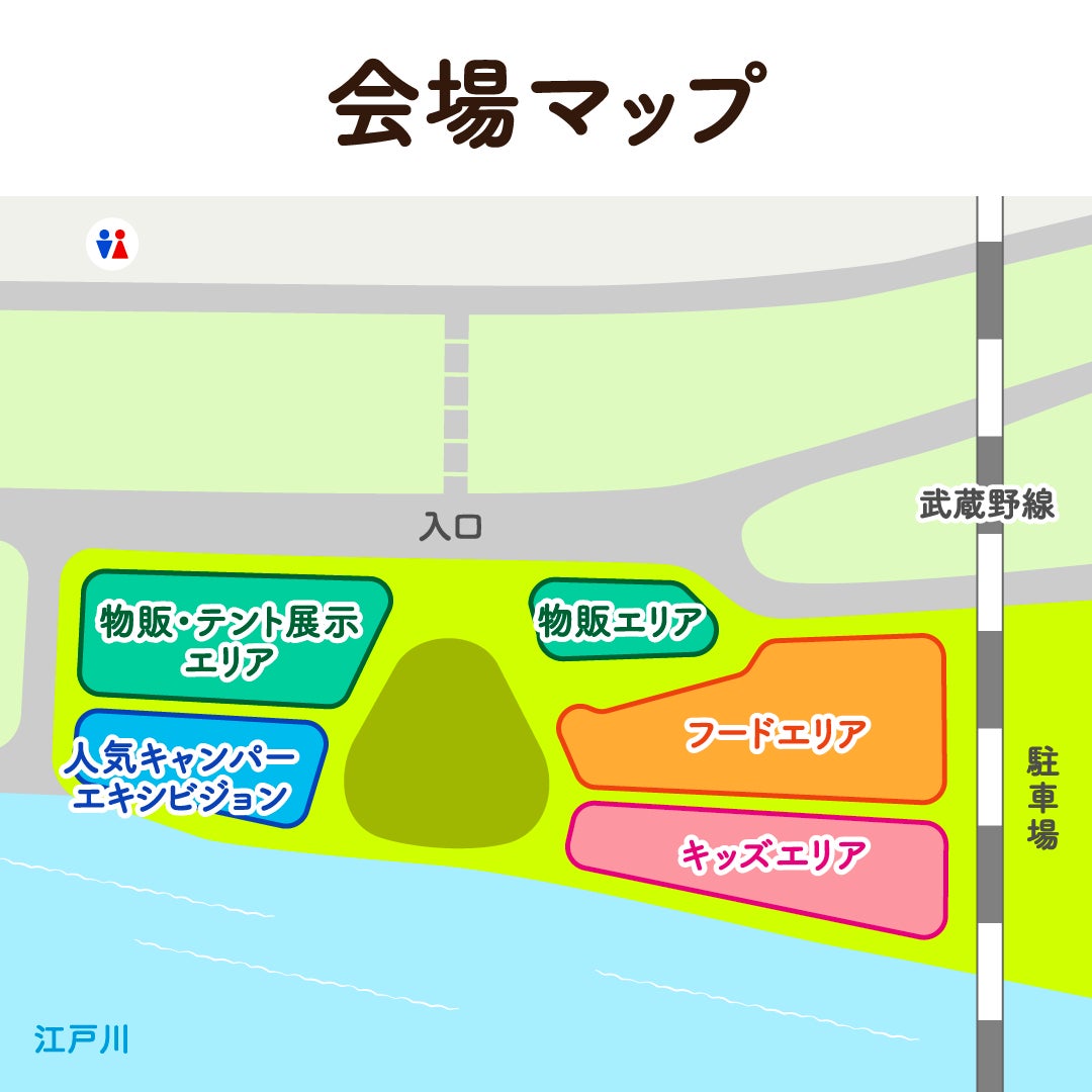 会場は埼玉県三郷市にある「かわまち三郷リバーサイドキャンプ場」。高速「三郷IC」からクルマで約10分、JR武蔵野線「三郷駅」から徒歩約5分と抜群のアクセスです。
