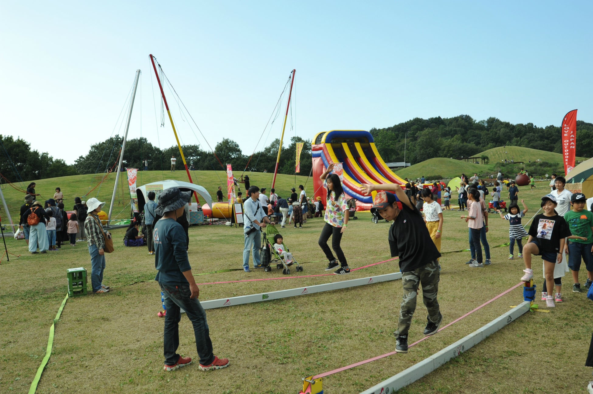 「LOG」や「BABACHO」、地元で愛される火とアウトドアの専門店「iLbf」など物販エリアは約30ブランドが出店。そのほか会場内のキッズエリアには、2日間限定で巨大スライダーやバンジージャンプなどのワクワクする遊具も出現します。