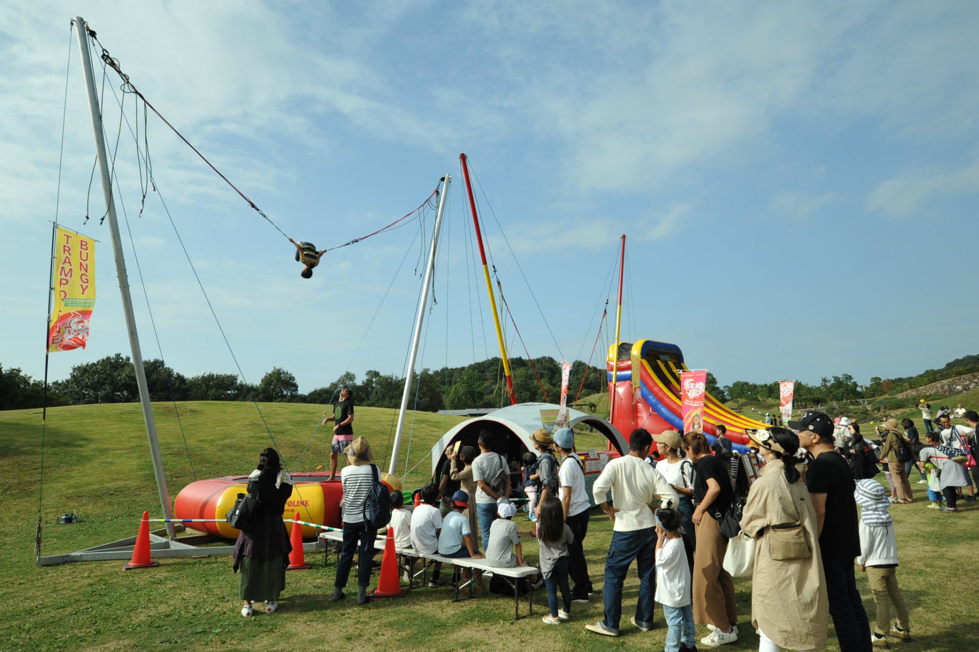 イベント期間中限定で、キャンプ場内にキッズエリアが登場。巨大な「スライダー」(100円/1回)や「バンジー」(1,000円/1回3分)に、めずらしい遊びに目がない子どもたちもきっと夢中になるはずです。