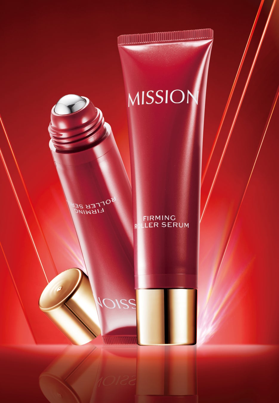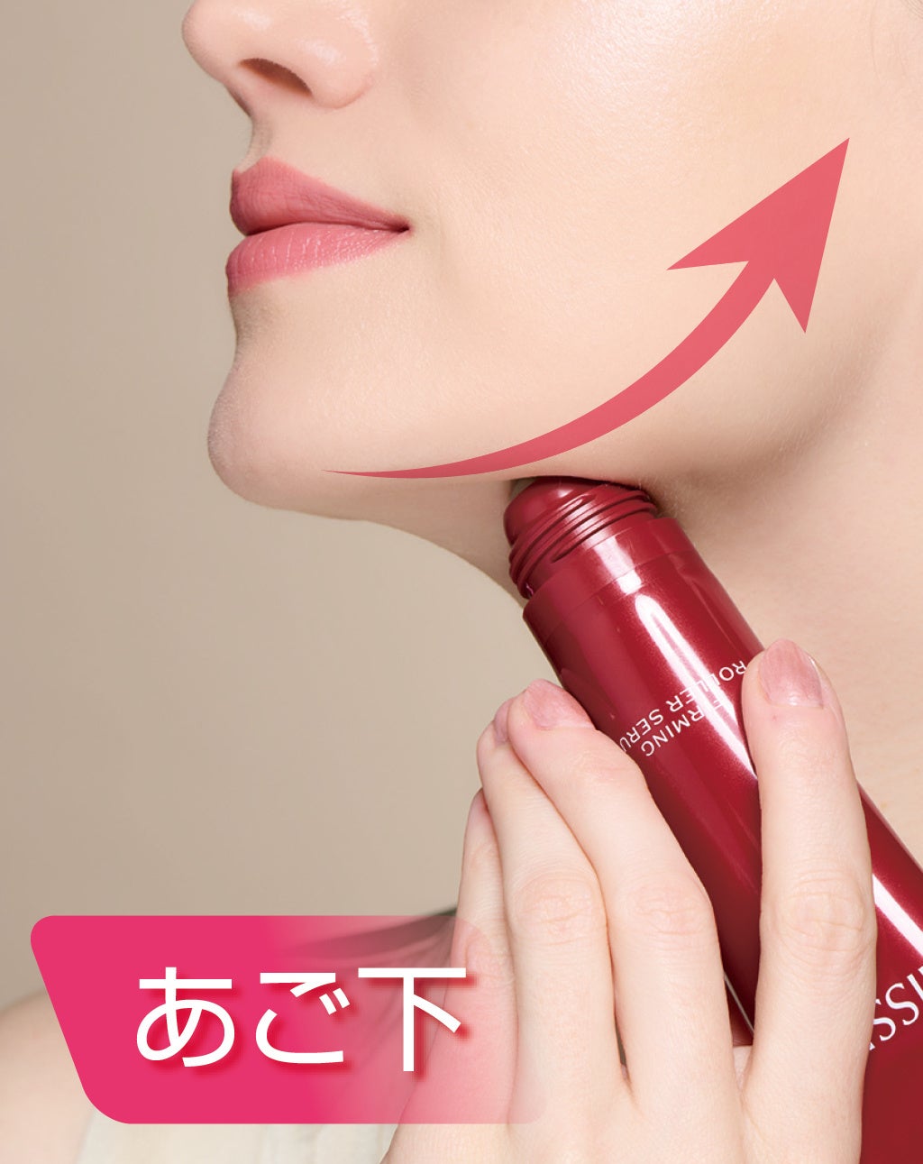 気になるフェイスラインを上向きマッサージで気持ち良くリフトアップ。MISSION初の美顔ローラー付き美容液で、すっきりひきしまった印象へ!