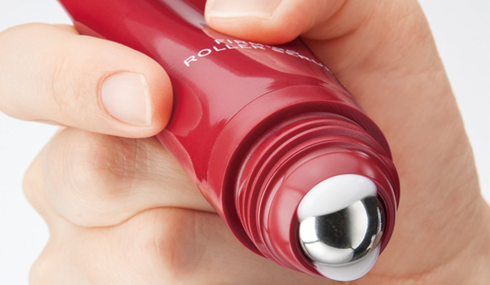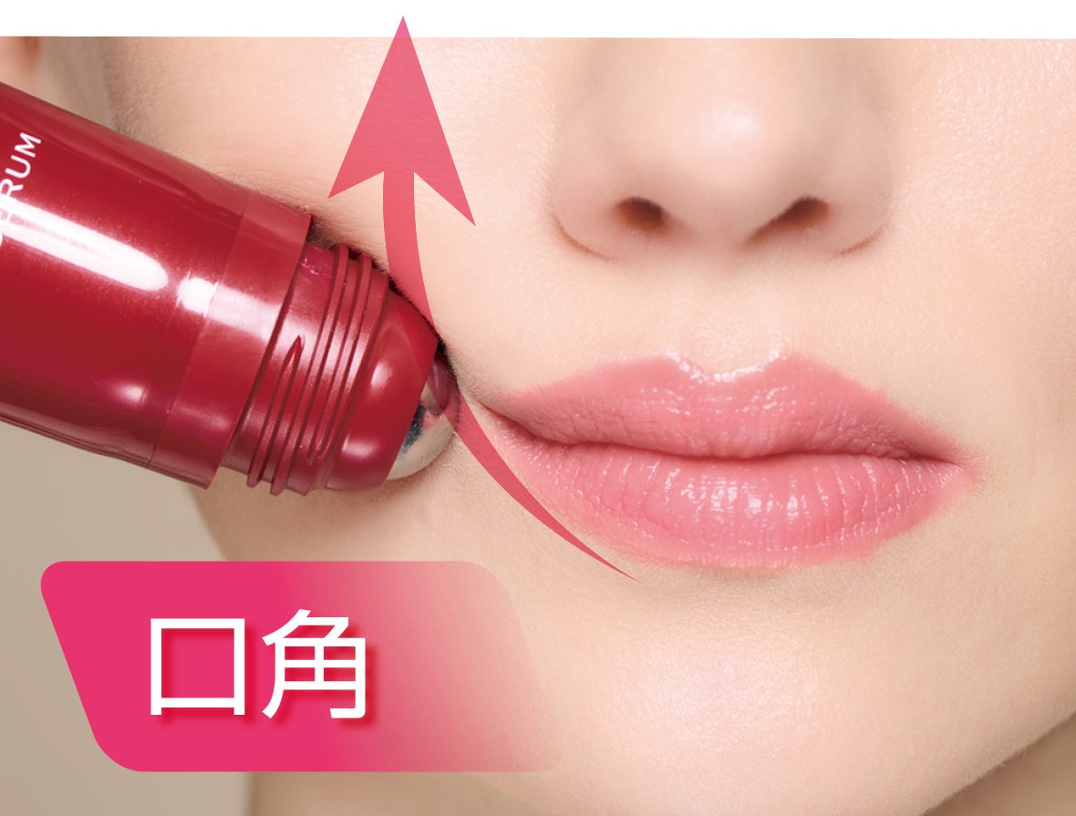 美容液と美顔ローラーがひとつになったミッション初の先進エイジングケア※2アイテム。頬、口角、あご下などの気になる部分をはじめ、顔全体や、首すじ、デコルテに、美容液を出しながら引き上げ塗りをするだけで簡単マッサージ。360°回転するステンレス製のローラーで美容液を塗布しながら表情筋にアプローチ。マッサージすることで血行をよくして顔のコリをほぐします。