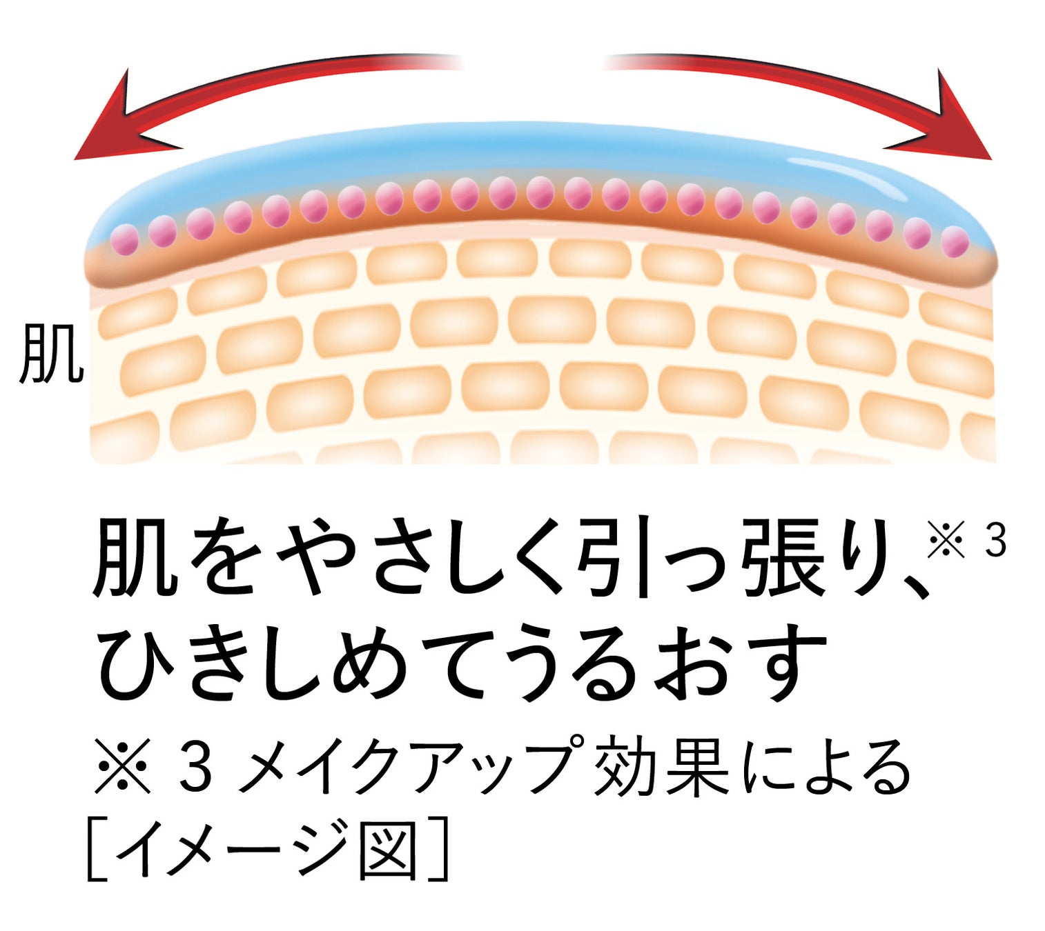 肌をやさしく引っ張り※3、ひきしめて、うるおいを閉じ込め、ピンとしたハリ感のある肌へ。