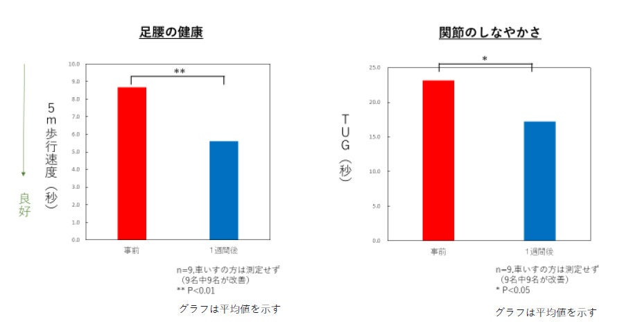 1) 運動機能(足腰の健康、関節のしなやかさ)