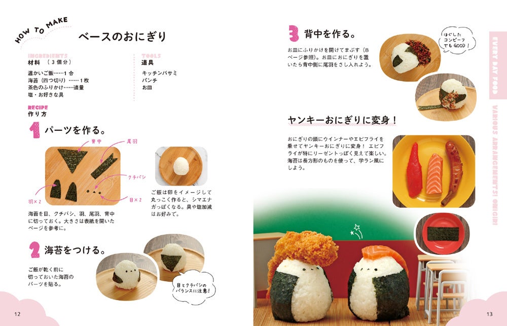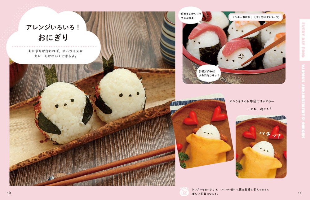 朝食、昼食、夕食に使える『ごはんなシマエナガ。』と、甘いものに特化した『スイーツなシマエナガ。』の2種類にわけて掲載。掲載レシピは計19点。作るも良し、かわいい写真を眺めて愛でるも良しの、見て楽しく、作って美味しい一冊です。愛らしい見た目のシマエナガがリーゼントに学ランというヤンキースタイルになった、SNSで人気の『ヤンキーおにぎり』の作り方も収録しています。